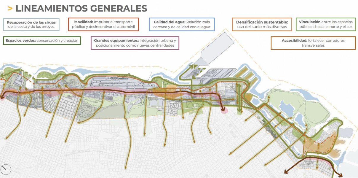 Características: Según los textos oficiales, el plan se propone reconvertir la relación de Buenos Aires y el Río de la Plata, integrando espacios que hoy son inaccesibles, transformando el frente costero en distintas piezas o polígonos de la costa a fin de alcanzar la inclusión de 110 ha de áreas verdes. Genera también 30 ha de nuevos espacios comerciales, habilitando emprendimientos gastronómicos, de entretenimiento o deportivos en tierra pública, que se integran como un plan de renovación costera sobre proyectos que se venían trabajando desde 2016.