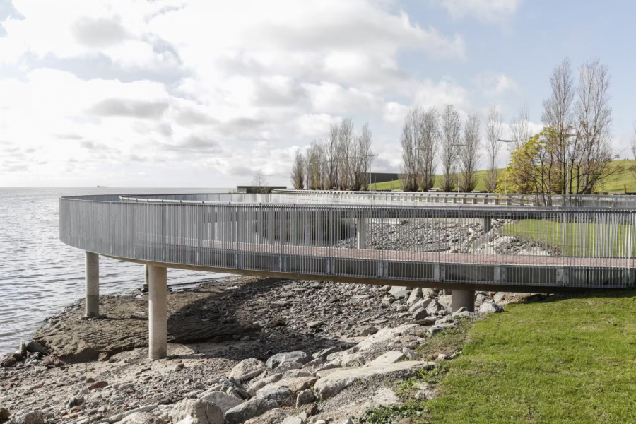 Detalle de los proyectos incluidos en BA COSTA: 1) Plaza Memorial AMIA. Se generó un nuevo espacio público de 3.285 m2 en conmemoración de las víctimas del atentado de 1994 a la sede de la Asociación Mutual Israelita Argentina (AMIA). Este parque regenera un espacio sobre los escombros del edificio que fueron volcados en la costa del río en su momento, incorporando un visor de vidrio que permitirá observarlos. También tendrá un reloj solar (con un pilar de metal de 20 m de altura que proyectará sombras en el suelo), una placa con los nombres de las víctimas, y 85 estacas verticales de acero inoxidable, de 3 m de altura con una lámpara en su extremo superior, en honor a las personas que murieron en el atentado. Finalmente incorpora una estructura de hormigón de forma circular y una pasarela, que -desde su extremo sobre el río- permite tener una perspectiva amplia del Memorial. Este espacio fue inaugurado en agosto de 2023.