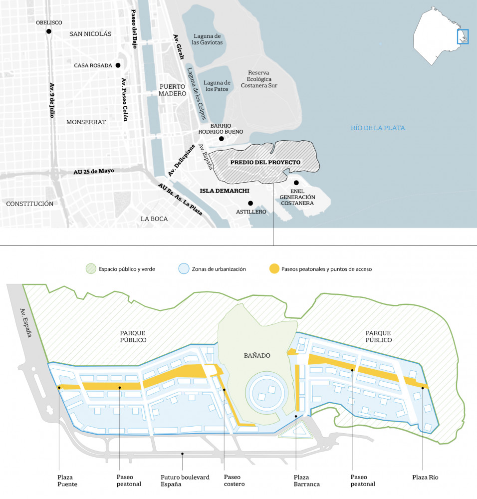 Área de referencia: El predio de intervención comprende a la ex Ciudad Deportiva de Boca, en un sector de la Isla Demarchi.