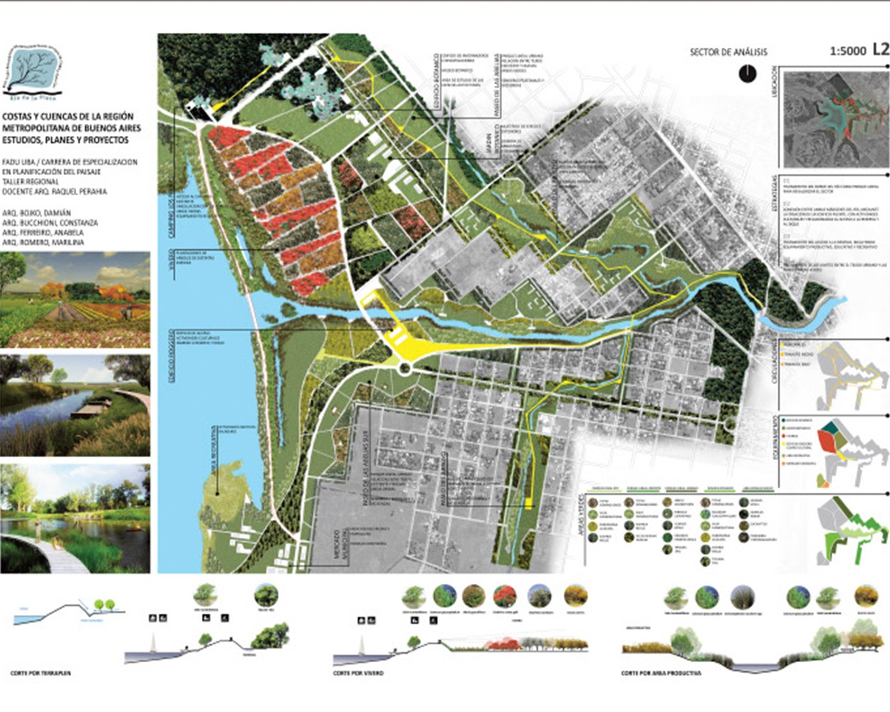 Propuesta: Creación de un parque-reserva que incluya la totalidad del dique Roggero y sus cauces, que proteja las áreas verdes vacantes, genere un polo de micro-turismo a nivel metropolitano y además fomente actividades deportivas especialmente náuticas. Fortalecimiento de centralidades emergentes alrededor del dique para densificar zonas urbanas con mayores servicios. Creación de un vivero municipal y un jardín botánico que produzca especies de arbolado urbano autóctono. Creación de un polo agro-educativo en convenio con el INTA. Fortalecimiento de áreas agro-productivas alrededor del dique que funcionen como buffer de contención frente a la mancha urbana. Creación de un mercado para los productos orgánicos generados en la región.